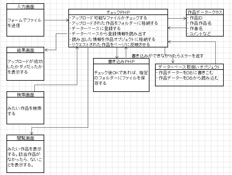 作品をアップロードして格納して、閲覧できるようにするためにこれだけは最低必要だな~と思う機能をまとめてみましたが、まだやらないといけない機能があるな~って感じます。